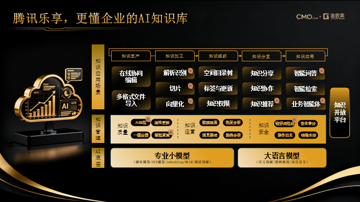 三、正在实践使用中,腾讯乐享已创制显著成效:云知学问库内月拜候量已达100w+,月均发卖渗入率可达80%+,每年可为腾讯节流成本约3亿元。潮宏基珠宝通过AI营销学问平台提拔门店施行分歧性取营销效能;某头部资管公司打制精准金融帮手,实现平安合规的数据阐发取更高质量的对客办事。这些成功案例印证了腾讯乐享做为大模子时代营销新基建的焦点价值,帮力企业学问库向聪慧脑转型。正在营销实践之外,腾讯乐享也已联袂零售、金融、制制、教育等多行业头部品牌,打制了可复制的学问办理取学问库扶植范式。腾讯乐享学问库,打制组织聪慧“新基建”,让学问触手可及。