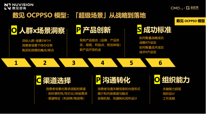 面临“千人千面千场景”的挑和,营销人应承担起场景洞察的职责。方军教员提出了全域场景化增加模子(OCPPSO)。